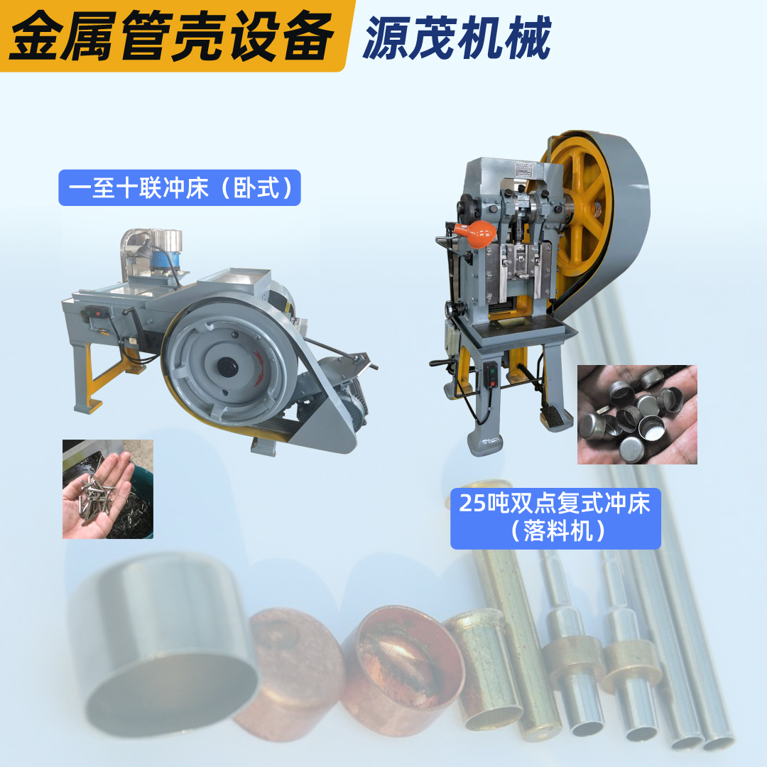 一至十聯沖床和雙點復式沖床(落料機)是金屬管殼專用的生產設備,點擊進入產品展示頁面瀏覽聯沖床技術參數說明